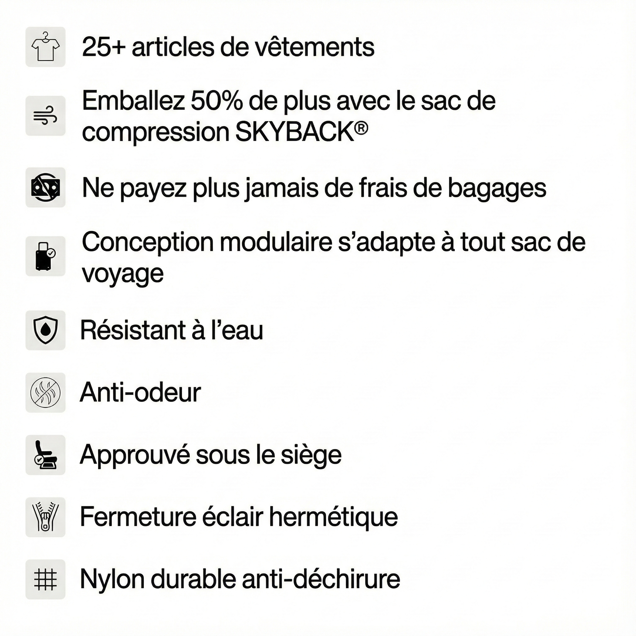 Optimize your luggage space with this vacuum compression bag, designed to reduce the volume of your belongings by up to 75%. Ideal for frequent travel, it protects your clothes from moisture and odors while maximizing the capacity of your suitcase or backpack. Reliable airtight seal and durable material ensure years of use. Perfect for short trips and long journeys alike.